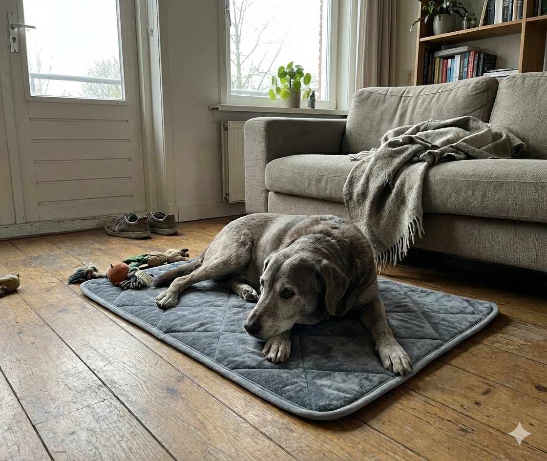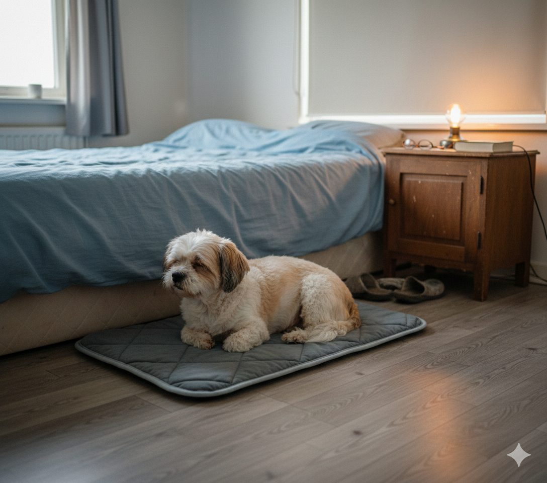 For best results, place the mat where your dog already likes to rest — on the floor, in their bed, by the sofa, or near your desk.